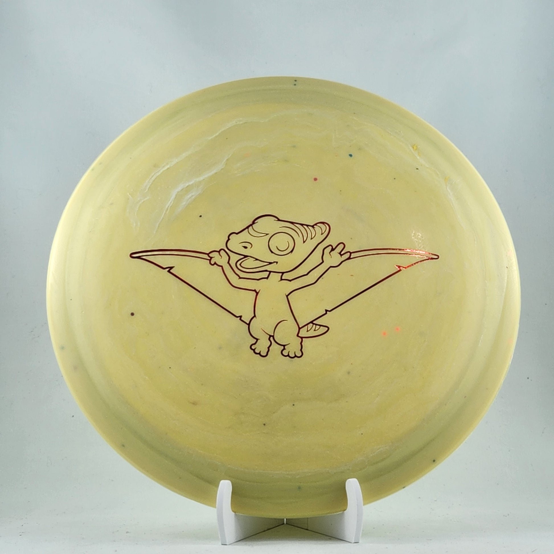 The Pterodactyl is a manageable driver for young disc golfers. The rim isn't too wide, thus a high-speed release is not necessary. However, it still lands in the "distance driver" category and provides a great gateway to longer, more impressive throws down the fairway. Like other Dino Discs, it is lightweight, floats in water, and is aimed at young players or those players without a lot of arm speed.